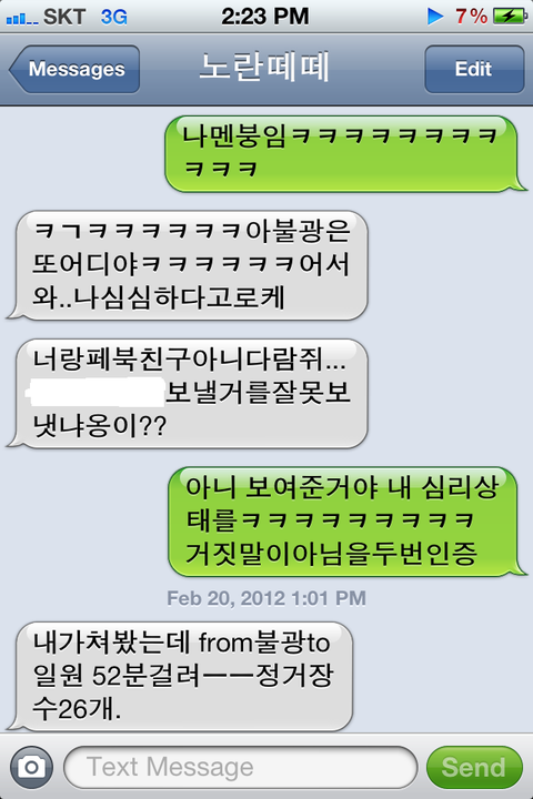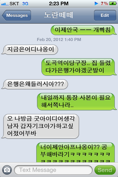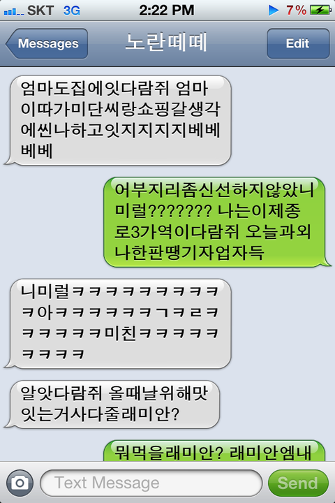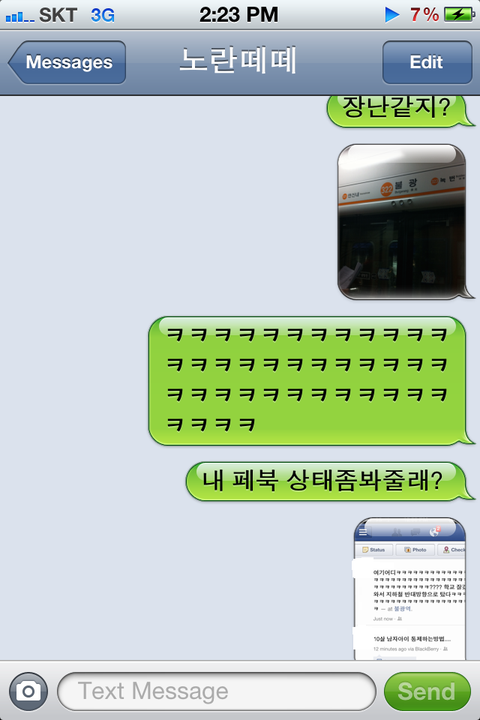 문자하느라 신나겤ㅋㅋㅋㅋㅋㅋㅋㅋㅋㅋㅋㅋㅋㅋㅋㅋㅋ아..... 저는 역방향으로