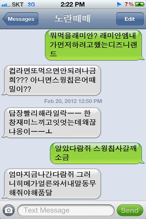 스마트폰은 문자 300개 한정이라서 문자 심히 아껴쓰지만