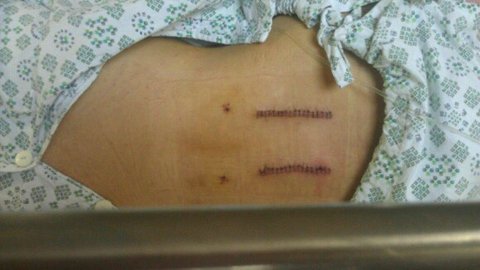 비위약하신들은 밑에 사진 보지 마시구요,,,, 평생남을 흉터랍니다, 소독할때 찍었습니다.