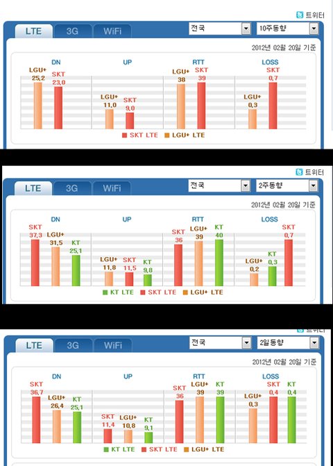 다른데서 퍼온건데 SKT가 LTE 속도 LG 잡아가고 있음