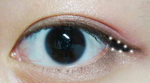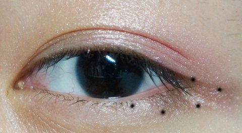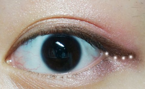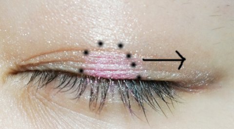 점선만큼 조금 핑크빛 섀도우를 바른후
