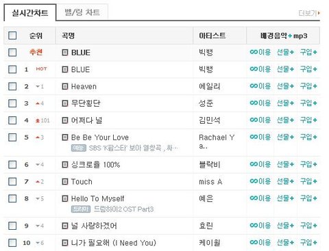 Blue.....거짓말에 이은 빅뱅의 명곡. 비온뒤 땅굳는다는 이야기가 바로 얘네들 이야기. 참 좋다. 정말 좋구나. 선율이며 가사며. 먼발치에서 짝짝 박수보내고 응원하마. 뭐 당연한 이야기지만 휘몰아치겠구나 또. 음. 그래 휘몰아치자!