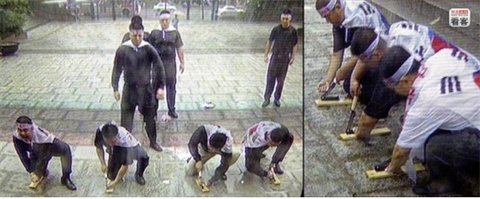 2004년 12월 1일, 서울에서 몇몇의 중년 여성들이 국가 안전 보장법의 폐지를 요구하며 삭발을 하려고 모였다.