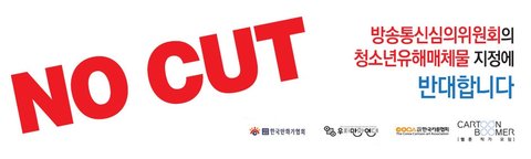 그래서 지금 만화가분들, 웹툰업계 종사자 분들이 이를 반대하고자 No Cut, 웹툰이 청소년 유해 매체물로 지정되는 것을 반대하는 블로그를 만들었습니다.