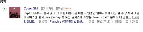 커버걸... 파라다이스라는 곡에서 같이 나오심. 발매일 11. 9.26 ! 올