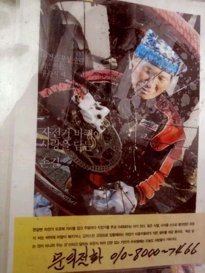 한강에서 자전거 무상수리를 해 주시는 유준식 할아버지 께서는 벌써 수년전 부터 사이클 동호회와