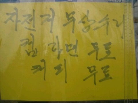 자전거 무상수리 보다는 컵라면과 커피가 무료라는 말에 삼꼬추는 바로 달려갔음.