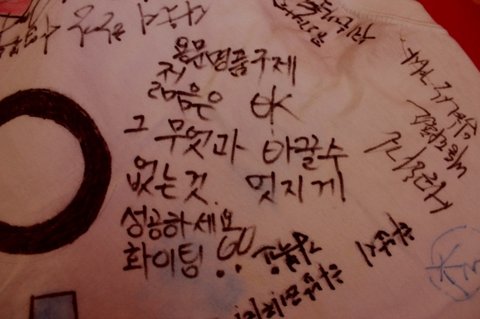 많은 분들의 응원 메시지와 싸인임.