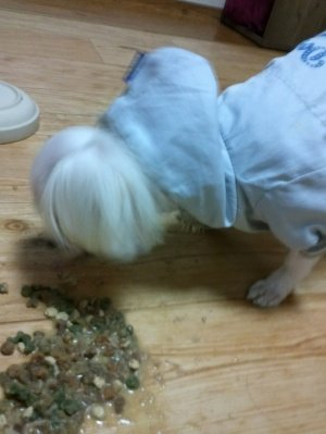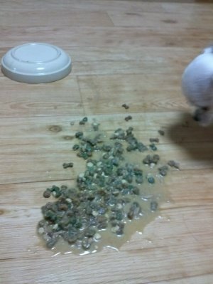 물에불려 먹는 사료가 따로있음. 겨울이라 따듯하게 먹으라고 전자레인지에도 돌려줬는데