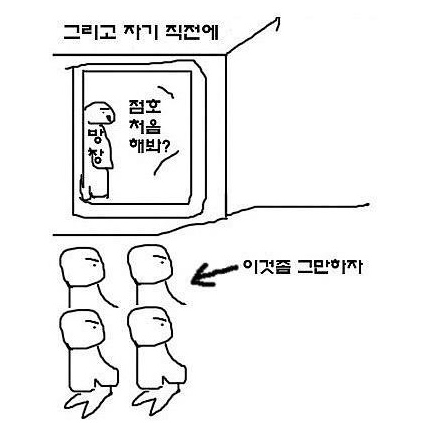 교관:"점오준비하고 문열어놓고 방장은 키들고 대기하십쇼!!!"