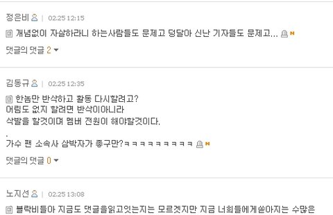 무슨 팬들이 악성댓글 캡처해서 여기저기 떠벌리고다니냐 ㅋㅋㅋㅋㅋㅋㅋㅋㅋ