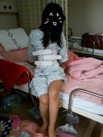 물론 허리보조기 차고^^ 이게 거의 사고난지 3주 넘어서 처음으로 앉은거임!!! 누워만 있다가!!