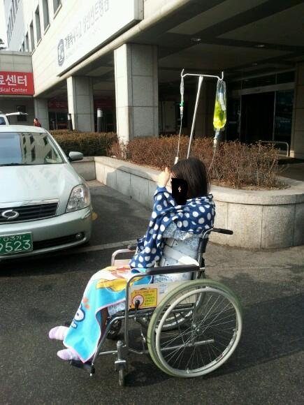 "언니... 나 휠체어 타고 바깥에 잠깐 나갔다 오면 안되? "
