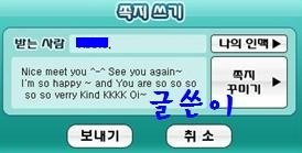 난 아는영어를 간단하게 조합을해서 쪽지를 보냄 ..