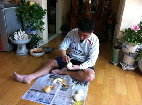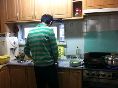 동생은 고추장불고기에 들어갈 생강을 다지는 중![]()
