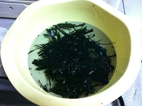 우선 생일상의 기본인 미역국 준비를 위해 건미역 투척!