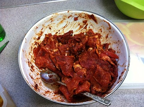 첫번째 요리, 고추장 불고기 절반의 완성!!