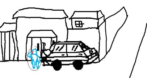 그래서 저기 아까 그렸떤 골목에 세워둔 차의 뒤로 가서 쪼그려 앉아 전화를 받았음.