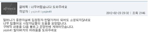 제가 글을 쓰는 이유는 금전적으로 도움을 달라는게 아닙니다.