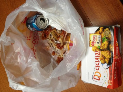반쯤먹고 남은 치킨을 슬슬 치우려는데 ㅋ