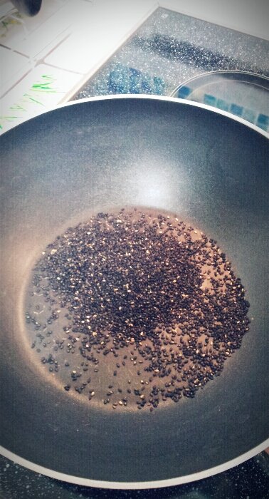 1. 검은깨를 약한불에서 쉐킷쉐킥 볶아주세요!