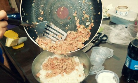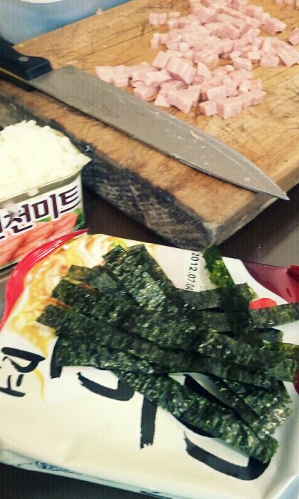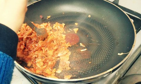 양파와 가공식품을 볶은 후 바로 김치를 볶아야했는데 밥버거를 먼저구워서 김치를 볶음ㅋㅋㅋㅋ
