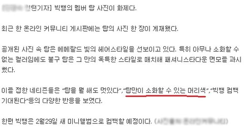 여기서 다시말하지만 저는 가수를 비하한게아닙니다 탑한테 머리색바꾸라고한것도아닙니다