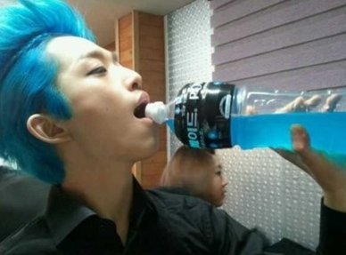 합성?을 한것같은데요 저 의미는 머리색이 파워에이드색과 흡사하여 저렇게 한거겠죠 ?