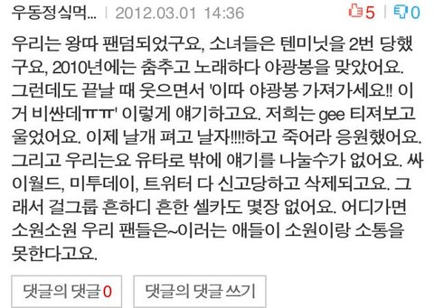 넘쳐난다. 소녀시대 멤버들의 부모를 욕하는 댓글까지도 종종 눈에 띈다.