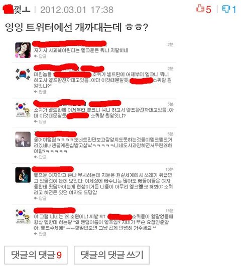 +)슈퍼주니어 팬덤인 엘프와 소녀시대 팬덤인 소원간의 불화입니다. 소원은 2008년 드림콘서트때도 소원과 소녀시대가 피해자임에도 불구하고, 공식 기자회견까지 열어가며 머리를 조아리고 사과를 했던 소녀시대를 떠올립니다. 하지만 엘프는 그런적이 있던가요? 무조건 남탓으로 돌리고, 일커졌다하면 수습하는 그런식으로 하진 않았던가요?