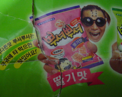 '오회사'에서 만든다양한 맛의 스프를 골고루 뿌려서 먹는 라면 형태의 부숴먹는 스낵입니다
