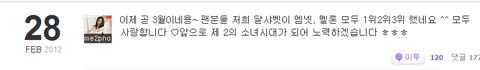 1위했다고 미투올리셧어요 ㅎㅎㅎ 세리언니