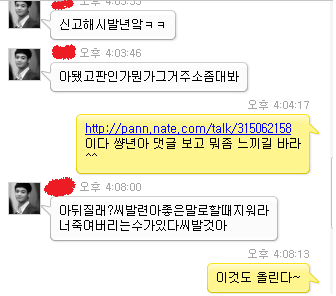 고뢔? 그러는 느금마는 느 낳고 좋으시다고 미역국 말아드셧겟지? (*^0^*) ㅗ 뻐큐머겅 두개머겅 ㅗ