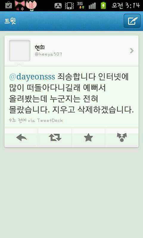 마지막으로 "입장바꿔놓고생각해보세요 이상한데서 내얼굴팔리는기분이어떤지 앞으로그러지마세요"
