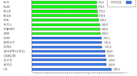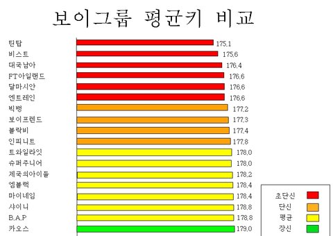 우연히 걸그룹 평균키 비교를 봤는데 보이그룹 평균키는 없어서 제가만들어봤는데