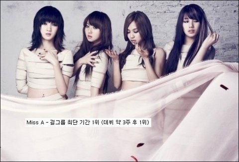 22. Miss A - 걸그룹 최단 기간 1위 (데뷔 약 3주 후 1위)