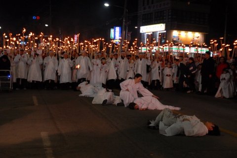 그렇게 맨앞줄에서 구경을 하면서 천천히 횃불행진을 구경하는데