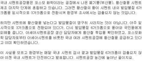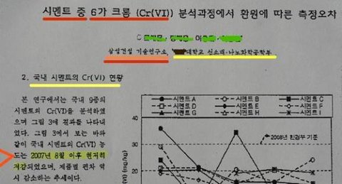 그 기사에서는 각종 혐오스러운 사진들을 올려놓고, 마치 그것들이 시멘트 속의 중금속에 의해 생긴 현상이라는 듯이 설명을 해 놓았는데..