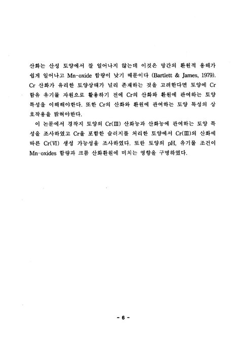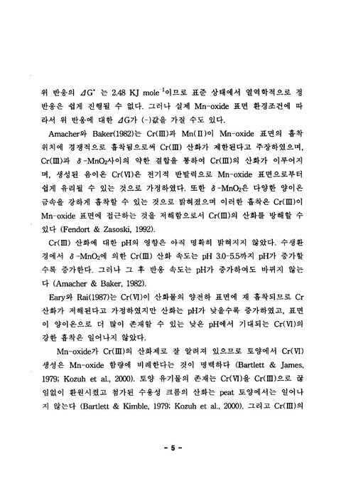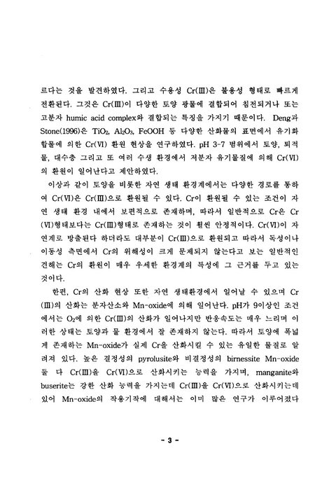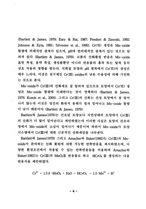 <토양에서 pH, 유기물 및 Mn-oxide가 크롬의 산화환원에 미치는 영향 - 엄진섭 석사학위 논문 대구대학교 대학원 자연과학과 2002>라는 석사학위 논문을 보면 이렇게 적혀 있음.