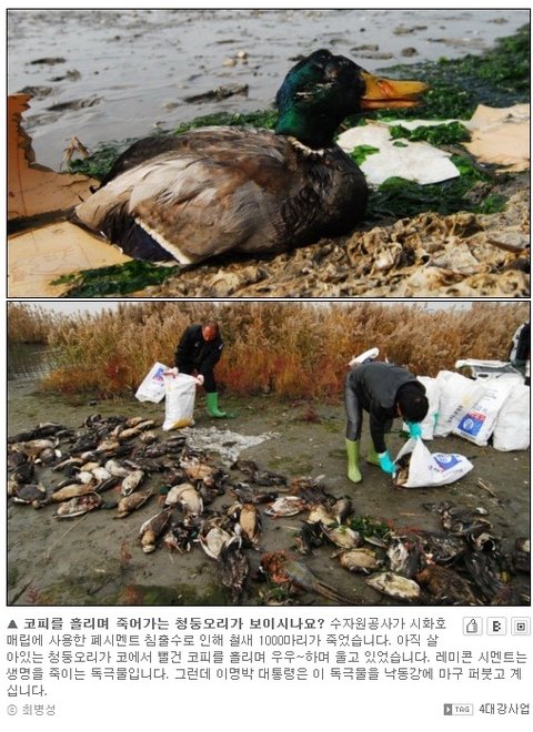 그리고 이 떼죽음의 원인을 시멘트의 독성으로 몰아넣고 있음.