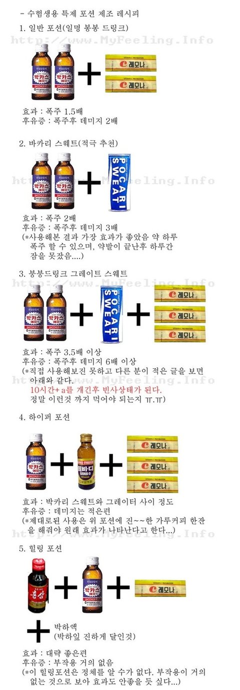제법 : 박카스 1개, 포카리스웨트1개, 포도당액기스 1팩, 비타민C 50g