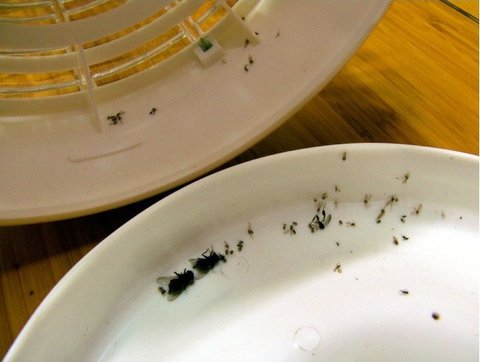 전등에 벌레 시체들이 많이 끼어 있었다.