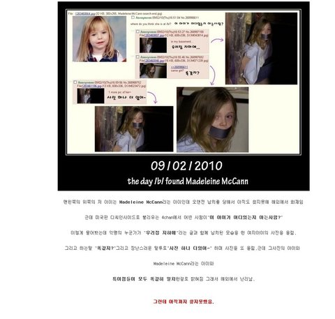 결론- 첫번째 웃고 있는 사진의 여자 아이는 실제 영국에서 찾고있는 여자아이, 그리고 지하실에 감금되어 있는것같은 여자아이는 영화 속의 배우(드라마->영화 : 꽃등심님 제보감사합니다람쥐),
