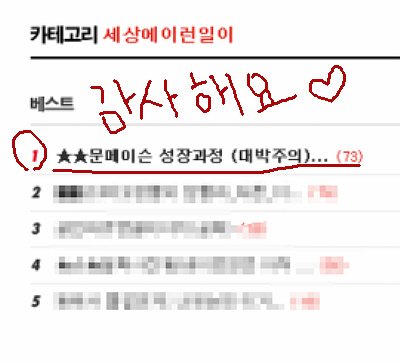 헐...톡 1위 라니!!!!!정말감사해요ㅠ^ㅠ 열심히 쓴 보람이 있네요ㅎ!