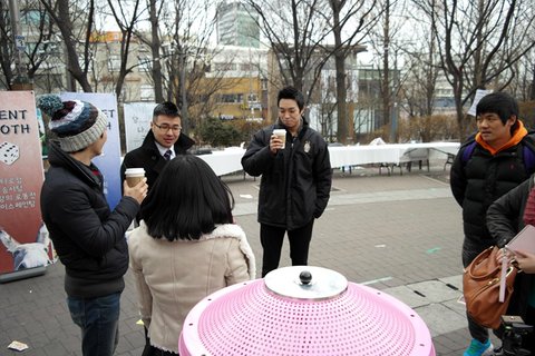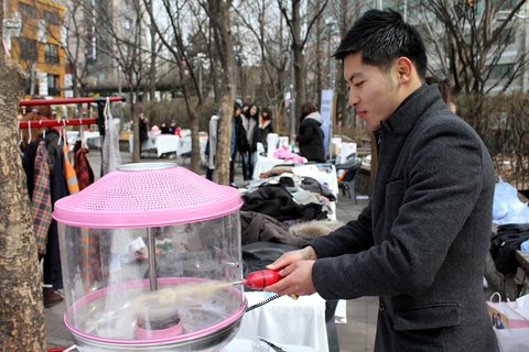 또한 지금은 군인이된... 도중이는 솜사탕을 만들고 있네요. 단돈 500원에 솜사탕을 팔았는데요 일정액 이상의 물품을 구입하시면 저희가 솜사탕을 무료로!! 드리는 이벤트를 제공했습니다. 그런데 사심가득한 저 군인은 여성분들에게 1000원짜리 같은 솜사탕을 만들어 드리더군요