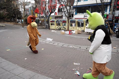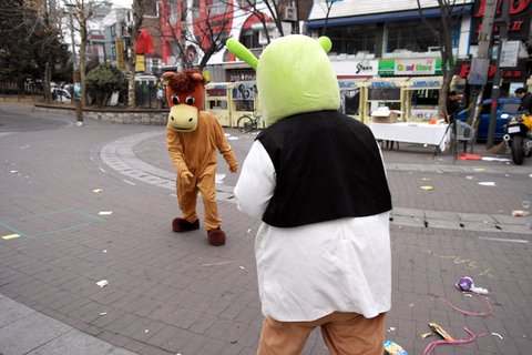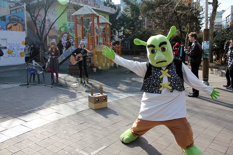 슈렉과 동키의 홍대놀이터에서의 만남 생각했던것보다 슈렉이 너무 못생겼습니다... 사람들에게 플리마켓을 홍보해야하는데 오히려 내쫓을 판 ㅋㅋㅋㅋ