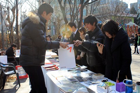 또한 책들과 CD 및 잡화류도 역시 많이 팔렸는데요 모든 제품을 판매하면서 금호건설의 다이어리를 증정해 드렸습니다.