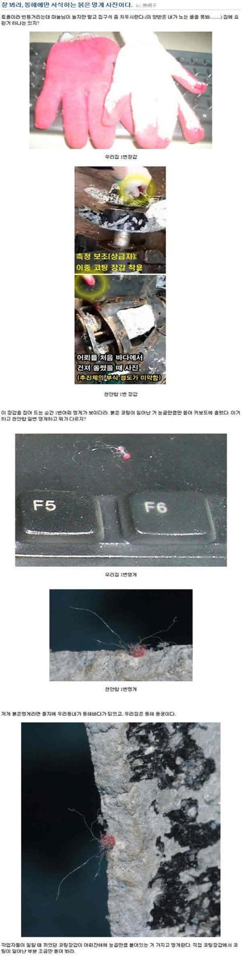 '붉은 멍게'의 정체가 바로 고무장갑의 고무 코팅이 떨어져 나간 조각이라는 것이다.