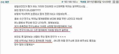 마지막으로는, 이주 박사를 직접 만나러 가겠다고도 썼지만, 곧 국방부 관계자로 추정되는 한 네티즌에게 덜미를 잡혀 꼬리를 내리고는 글을 모두 삭제하고 자취를 감춘다.