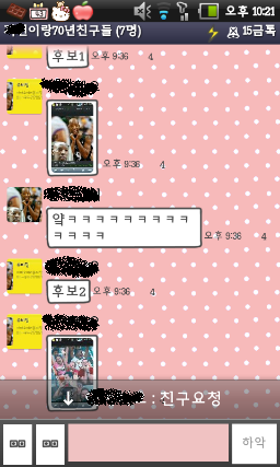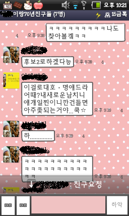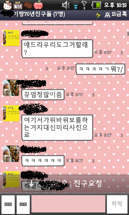 심심한 칭구1이 갑자기 제안을함ㅋㅋㅋㅋㅋㅋㅋㅋㅋㅋㅋㅋㅋㅋㅋㅋ(그뭐냐 그그그그아갑자기생각이안나.....아 대화방의 친구는7명인데 세명만대화한게 함ㅋ정ㅋ)